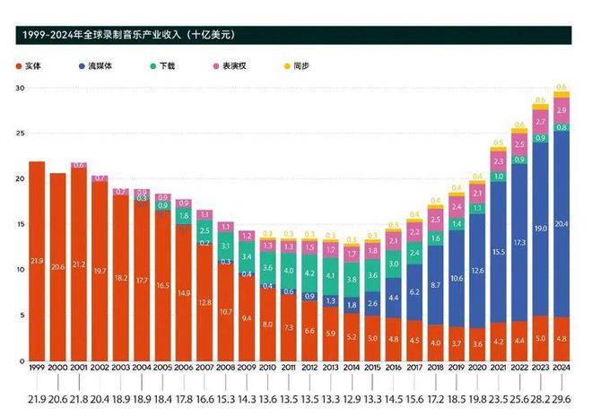 证据IFPI《2025各人音乐通晓》数据骄横,流媒体总收入达204亿好意思元,同比增长7.3%,相较于2021年(23%)、2022年(11%)、2023年(9.8%)悠闲放缓;同期,行动营收撑持的付费订阅流媒体收入同比增长9.5%,较2023年的11.2%下降近2个百分点。这也导致,各人录制音乐总收入增速从2023年的10.2%骤降至2024年的4.8%,增速腰斩,创下2015年以来的最低年增长率,意味着流媒体正在进入显豁的平台期。