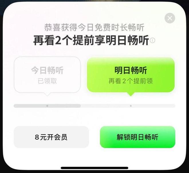 与番茄演义、红果短剧的切入旅途相似,汽水音乐沿用了一套基于用户时长变现的会员兑换体系,用户初度登录即可领取免费会员,无需任何付费,后续可通过每不雅看80秒告白,兑换24小时会员职权,且不错累加。