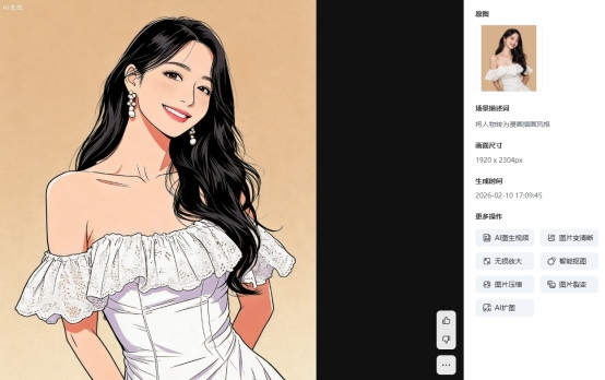 如若但愿快速把像片处理为动漫格调,同期兼顾其他图片剪辑需求,可以优先筹商易可图。其全能改图功能营救通过笔墨形色对图片进行修改,包括换色、换装、布景诊疗、明晰度成立等,也可用于已矣漫画格调转机。