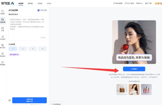要领一:在AI全能改图中上传一张或多张图片;