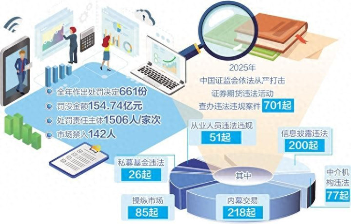 2025年,中国证监会照章从严打击证券期货罪人手脚,查办罪人违法案件701起。其中,信息表示罪人案件200起,中介机构罪人案件77起,内幕交游案件218起,主管市集案件85起,私募基金罪人案件26起,从业东说念主员罪人违法案件51起。