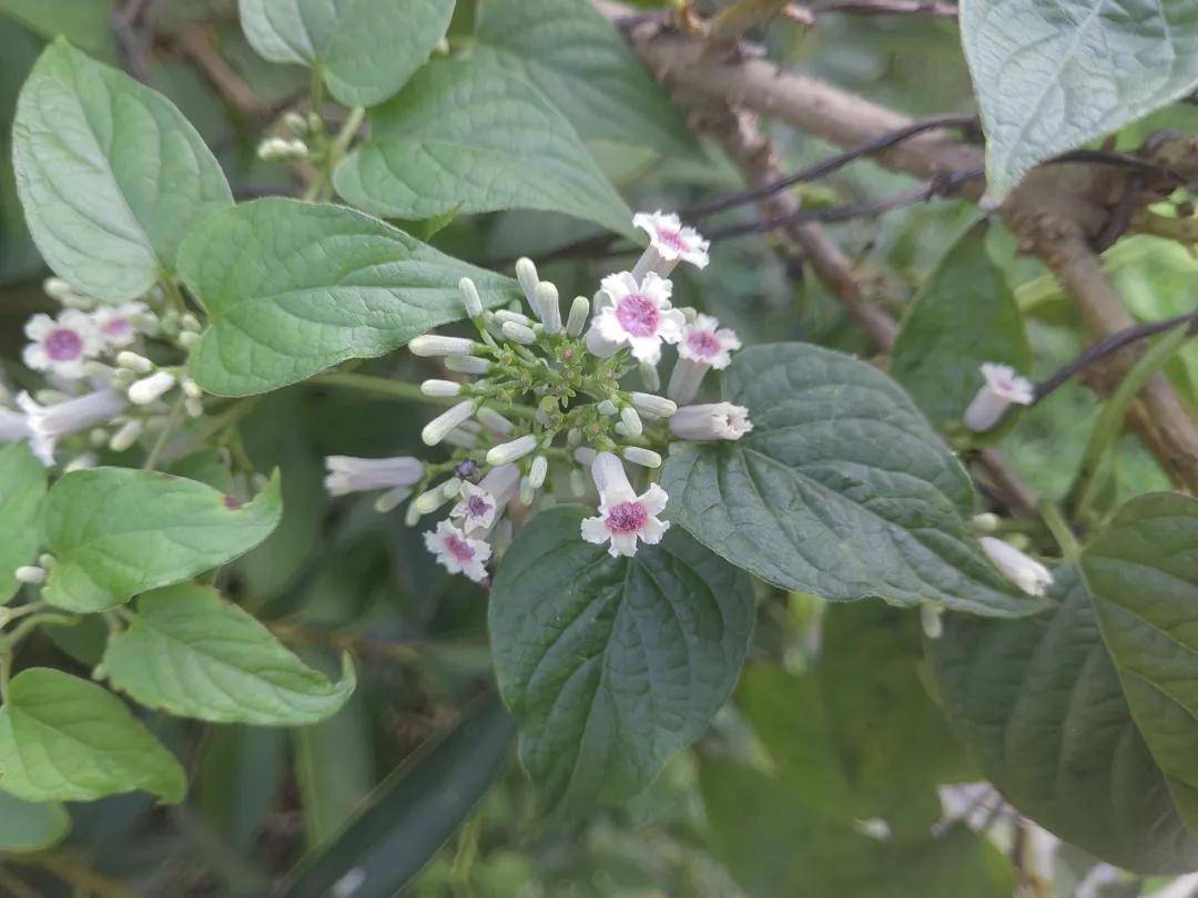 农村山野有一种“臭”名昭著的植物,长长的茎蔓,缠缠绕绕,远望有点儿像萝藦,花开素雅别致,它便是「鸡屎藤」。