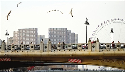 连日来,海河河冰开化,广博红嘴鸥翔集。 记者 胡凌云 摄