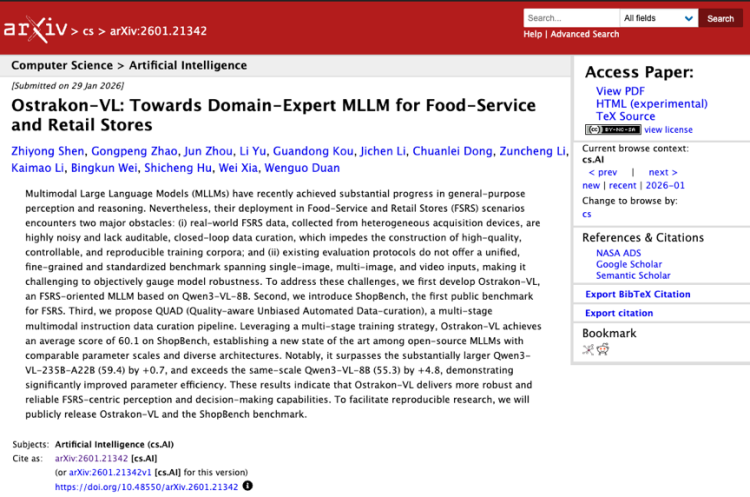 【环球网科技笼统报谈】2月28日讯息,近日,淘宝闪购负责发布专为餐饮业绩与零卖门店打造的风控处置垂直鸿沟开源大模子——“白泽”(Ostrakon-VL),并晓喻干系技艺智力向全行业免费绽放。