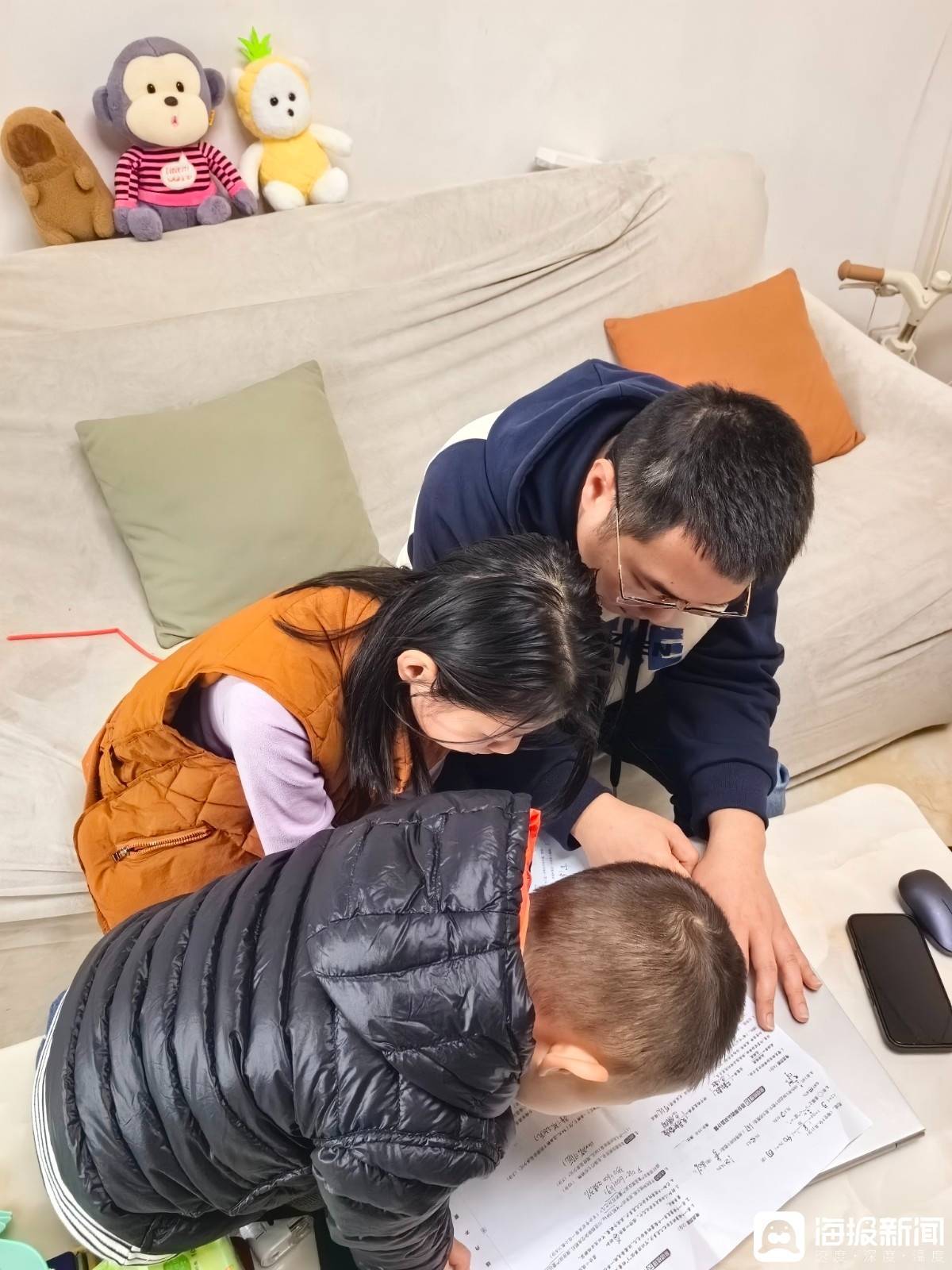 危一引导佳佳功课,年幼的弟弟也好奇地凑过来。