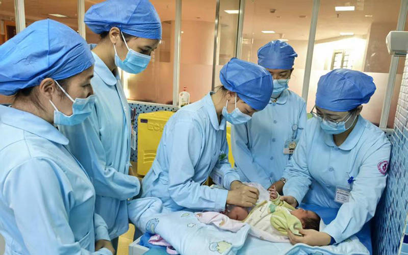 德宏州妇幼保健院医务东谈主员正在照顾婴儿。