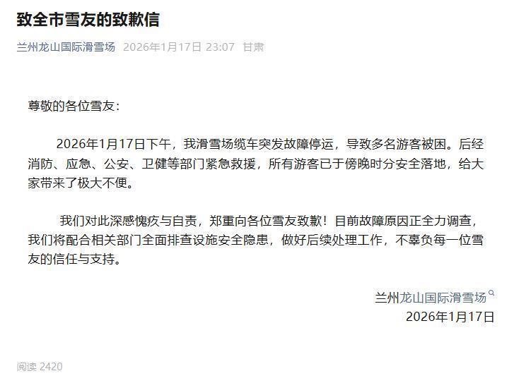 17日23时07分,龙山滑雪场通过微信公众号就此事致歉,称对此事件深感羞愧和自责,并暗示当今故障原因正全力访问,将合作关系部门全面排查安全隐患,作念好后续处理责任。