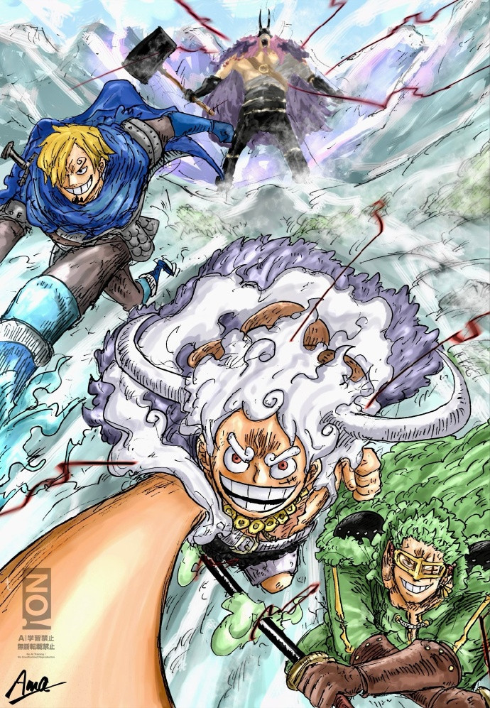 洛基和路飞的大战臆测暂时不会成功出现,先出现的应该是索隆和山治与神之骑士团的大战!
