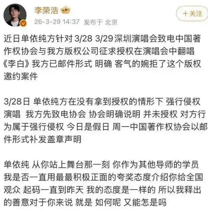 李荣浩方的拒却是那样的清鲜明白,但强行侵权却是那样的仗义执言,也难怪他会如斯不悦。